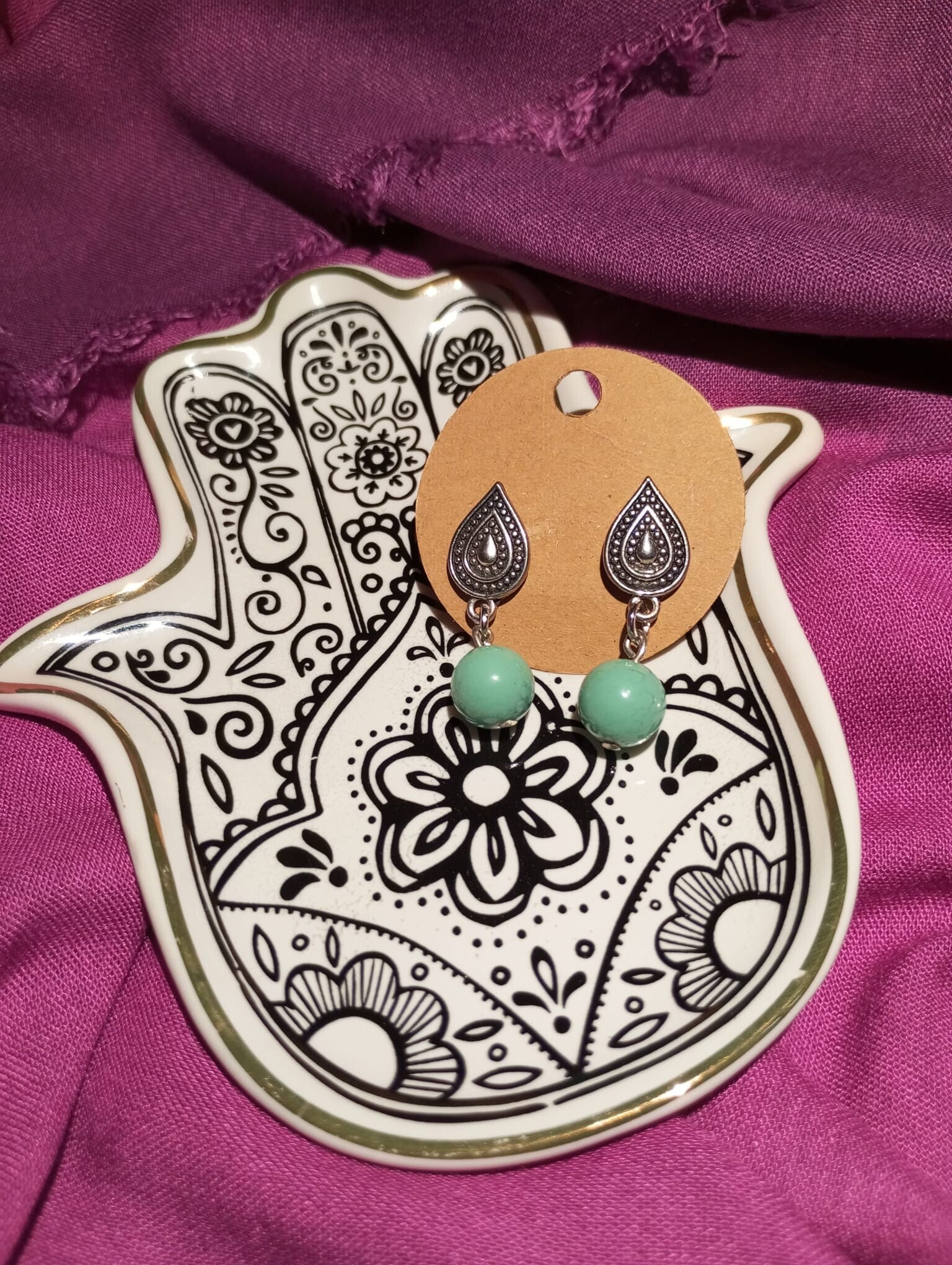 Pendiente gotitas plateadas con con bolita turquesa
